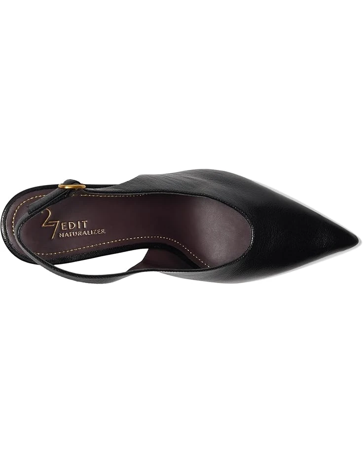 - Walk into elegance and comfort wearing the Naturalizer® 27 Edit Elaine-where style meets sustainability. Crafted from premium, responsibly sourced leather, these sleek heels feature a sophisticated slingback strap and U-shaped topline for timeless appeal. The pointed toe adds a chic finish, while REZORB responsive cushioning and Contour+ Comfort technology ensure sneaker-level support with every step. Designed with a smooth lining and insole for breathability, plus a rubber outsole for durable wear, these heels are perfect for all-day wear.