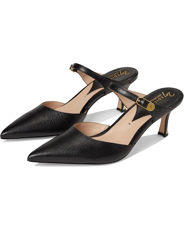 - The Naturalizer® 27 Edit Ileene pumps are chic mules with a lift. Everyone’s wearing these right now. These sleek heels are designed with a Mary Jane-inspired top strap and premium leather upper that is responsibly sourced from Leather Working Group certified tanneries. They feature a signature Contour+ Comfort technology for a premium fit and true, all-day comfort experience while the smooth faux leather lining and faux leather insole offer natural comfort and breathability. The partially bio-based footbed is crafted with soft and lightweight cushioning, built-in arch support, and a molded heel cup. These heeled pumps are built with REZORB™ responsive cushioning for shock absorption + impact protection for sneaker-level comfort in heels. The sockpad, insole, and toe box are crafted from partially recycled materials. Designed to the contours of a woman’s foot, these pump shoes are built with REZORB™ responsive cushioning for shock absorption + impact protection for sneaker-level comfort in heels.