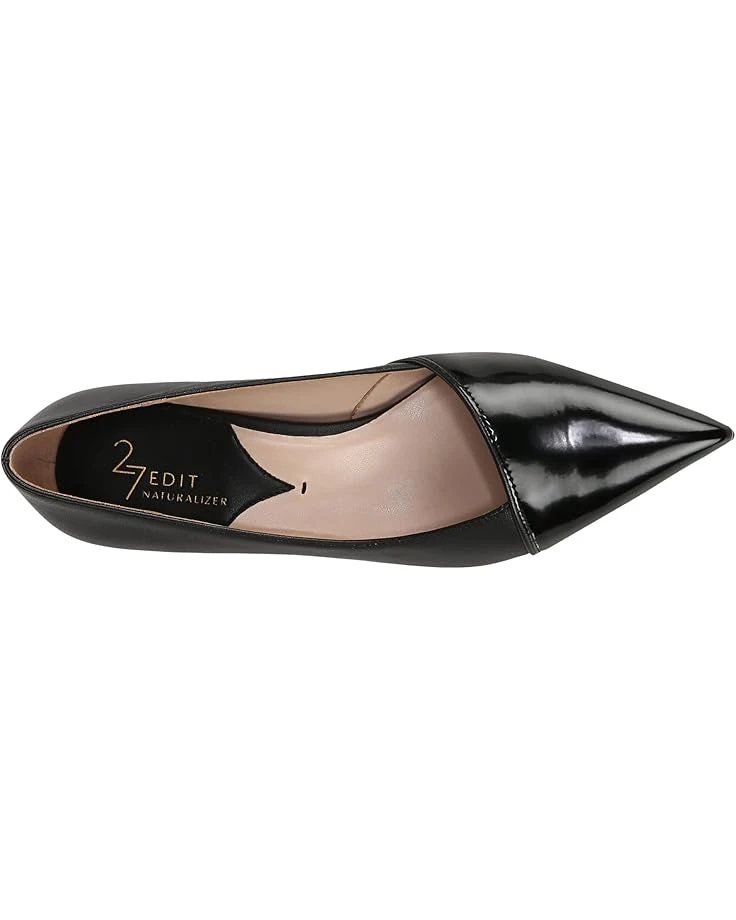 - Rise to the occasion wearing the Naturalizer® 27 Edit Nova. This pair of elegant heels with asymmetrical topline is crafted from leather upper responsibly sourced from Leather Working Group certified tanneries. Featuring closed pointed toe, REZORB™ responsive cushioning for shock absorption + impact protection for sneaker-level comfort in heels. Signature Contour+ Comfort technology for a premium fit. Smooth lining and insole for natural comfort and breathability, and extra cushioning for added layer of unrivaled comfort.
