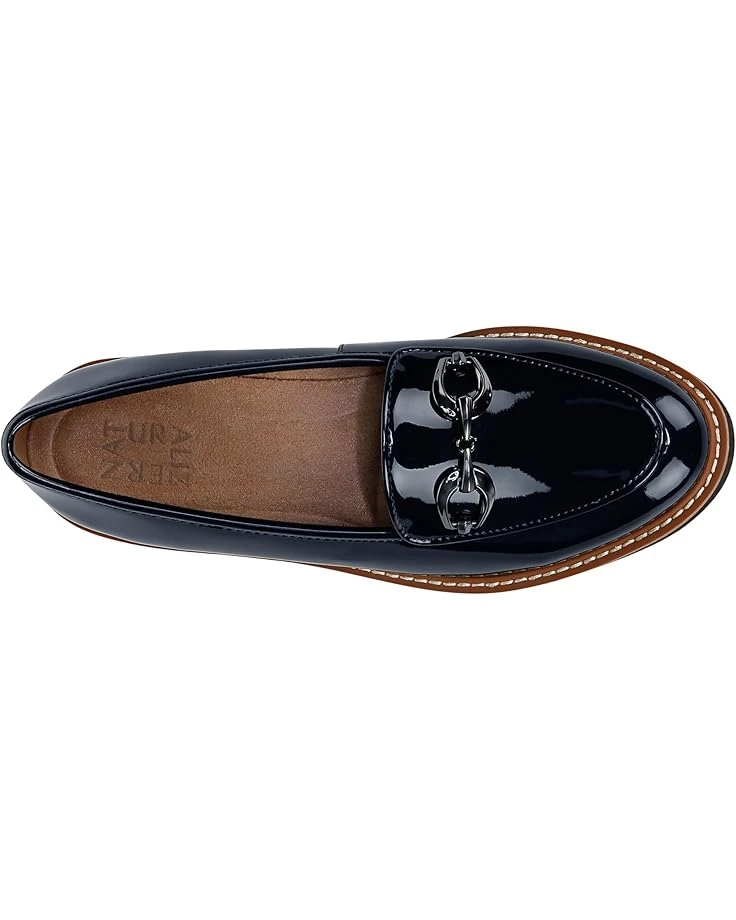 - The Naturalizer® Adiline Bit is perfect for everyday outing. Made from leather upper, polyester lining, flexible and lightweight EVA sole. This pair of shoes features metallic horsebit ornamentation detailing, closed almond toe and lug sole.