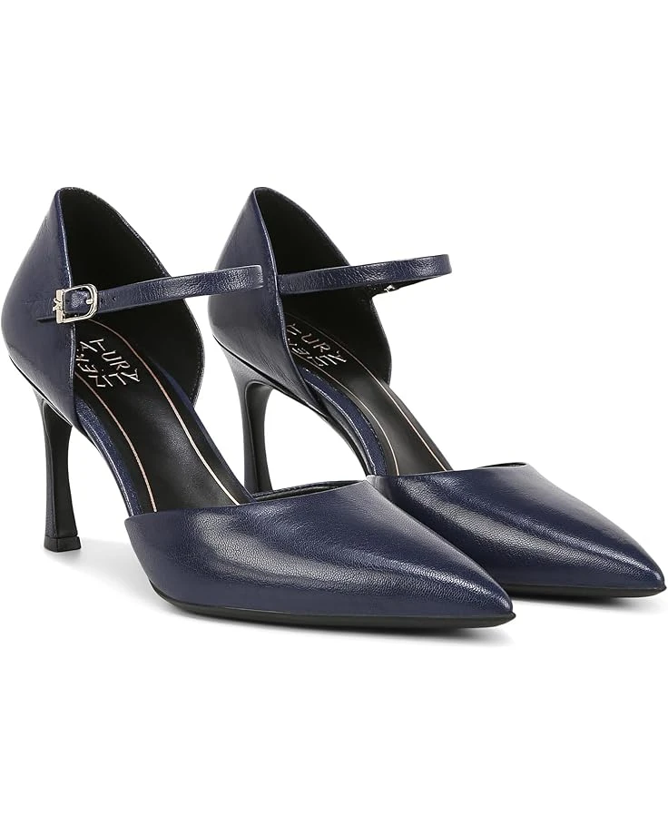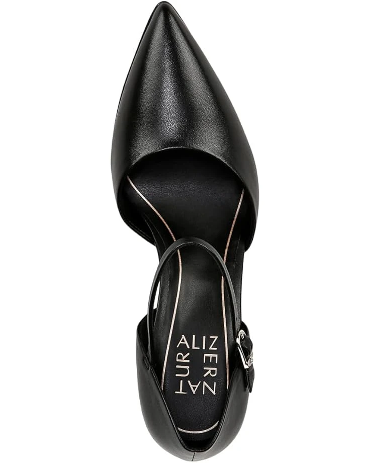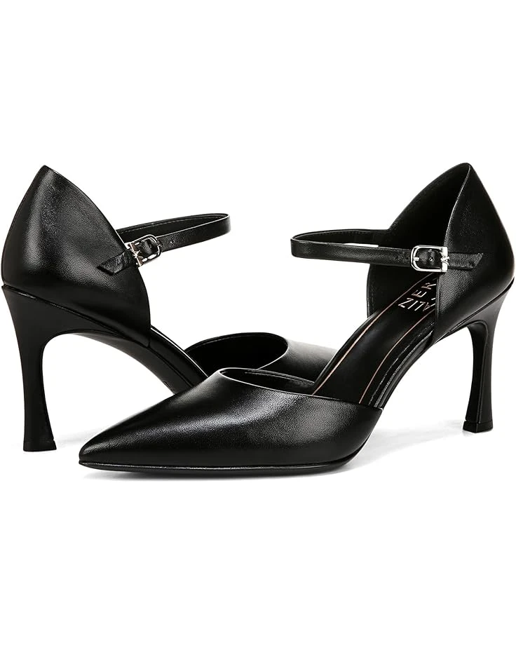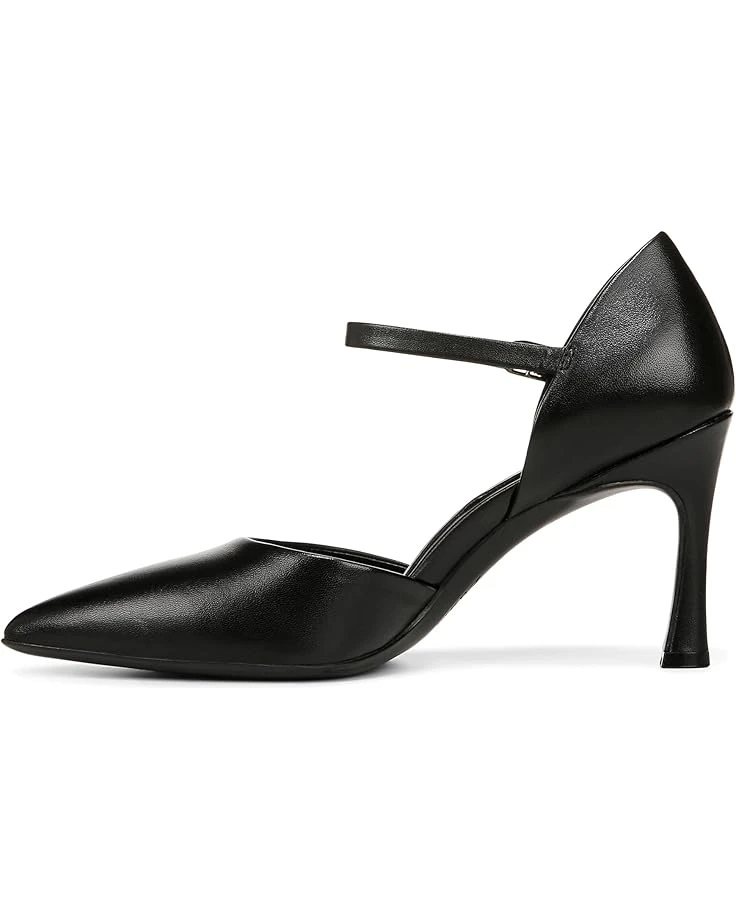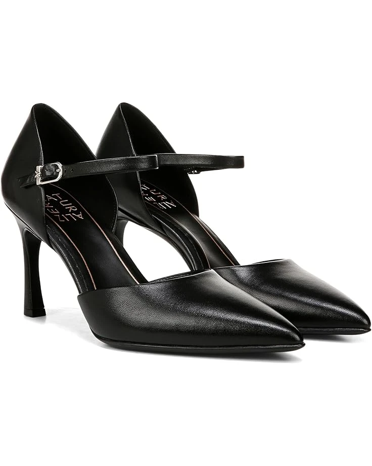 - Include the gorgeous Naturalizer® Amber into your plans for day out or prom night. The pair stands on a kitten heel with skinny buckle adjustable ankle strap. Crafted with leather upper responsibly sourced from Leather Working Group certified tanneries, the pointed toe footwear boasts Contour+ Comfort technology for a premium fit and all-day comfort experience.