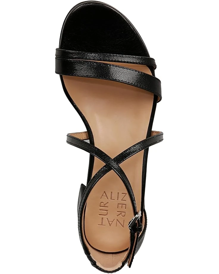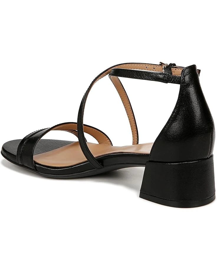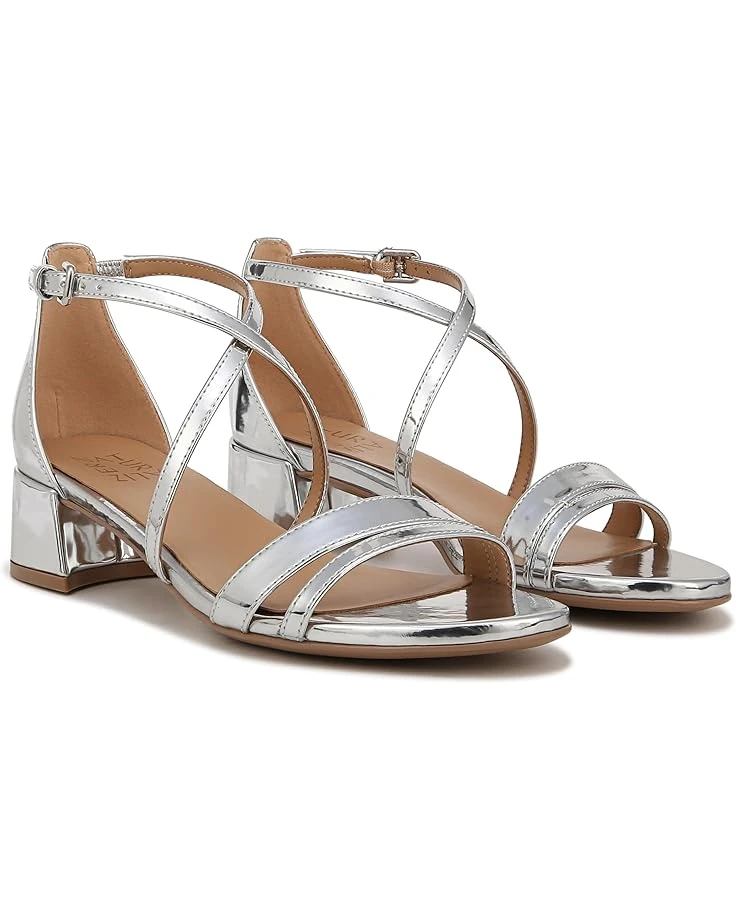 - Feel that essential soft support on your feet that lets you move freely by wearing Naturalizer® June Strappy Low Block Heel Dress Sandal. It features leather or metallic synthetic upper with a round open toe. Crisscross straps with adjustable buckle closure, contour+ comfort technology and block heel make shoes firm in traction. They are crafted from polyurethane lining and foam insole.