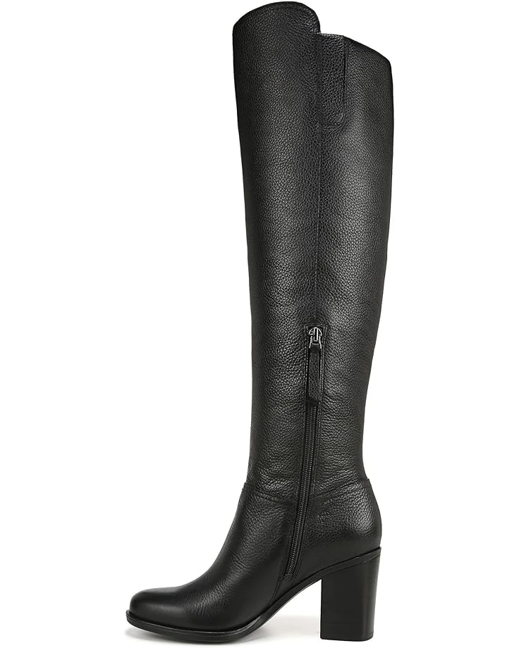 I love these boots. They have a nice texture to the leather, they stay up well and the block heel is comfortable. They are quite stylish, and the leather is buttery soft. I often have a hard time finding tall boots: they are either too tight or way too loose. I’m not quite a wide calf and these are perfect. They fit exactly as I expected, based on the measurements provided online
