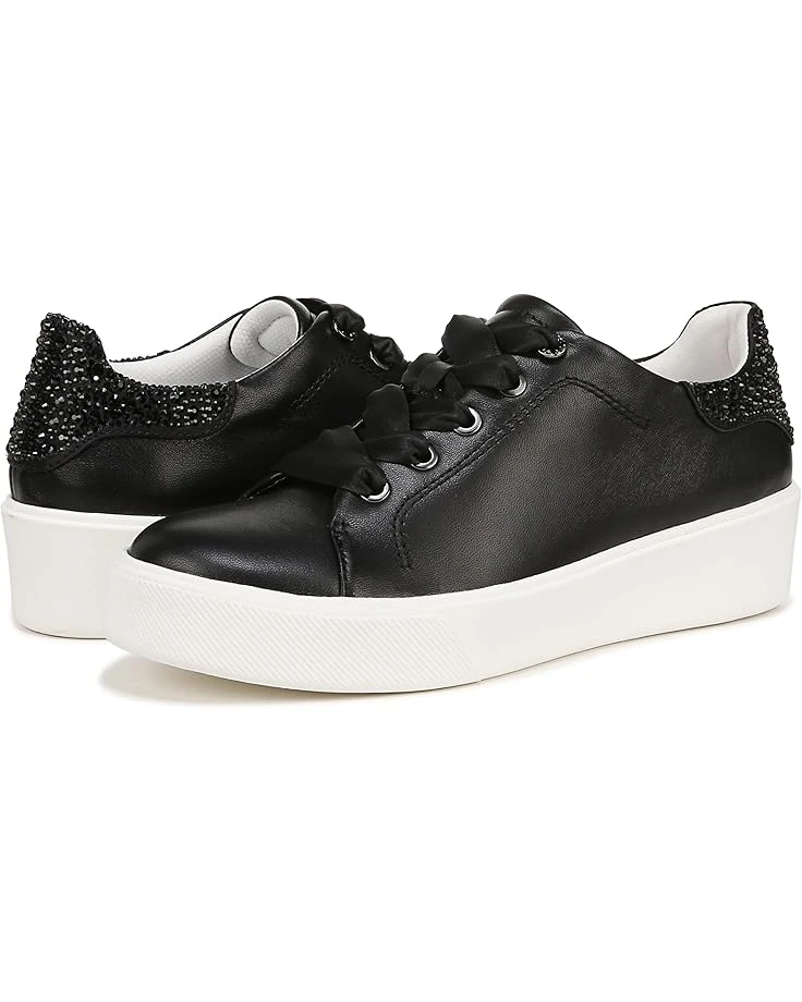 - Adorned with satin and rhinestone details, the Naturalizer® Morrison Bliss sneakers dazzle up your everyday look. The low-top sneakers have a leather upper with soft synthetic lining and a comfy removable foam footbed. The shoes also have Contour+ Comfort technology for a premium fit and all-day comfort experience.