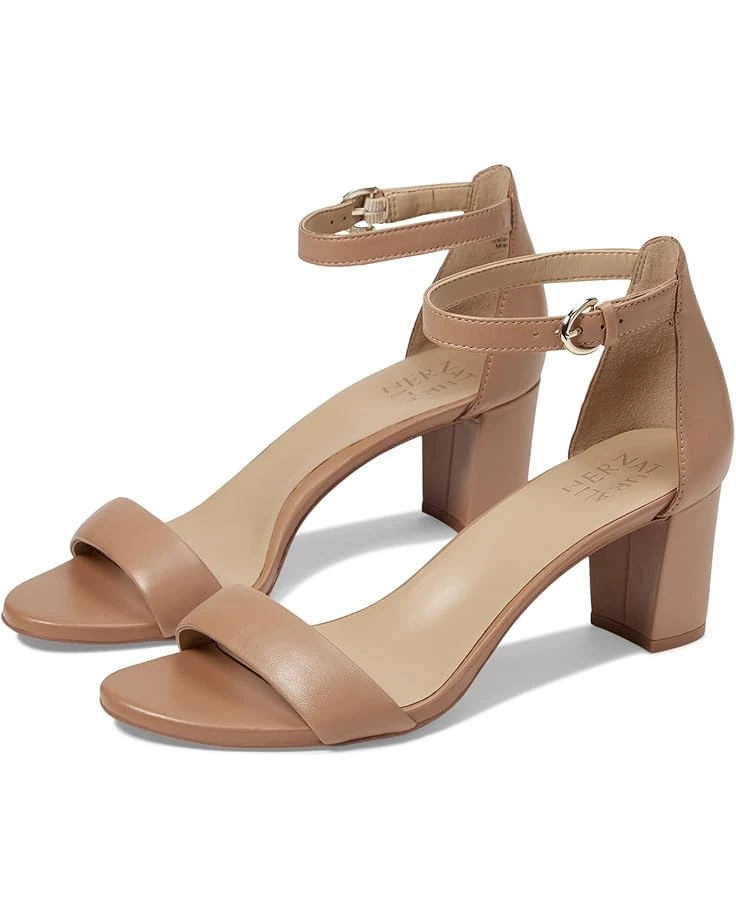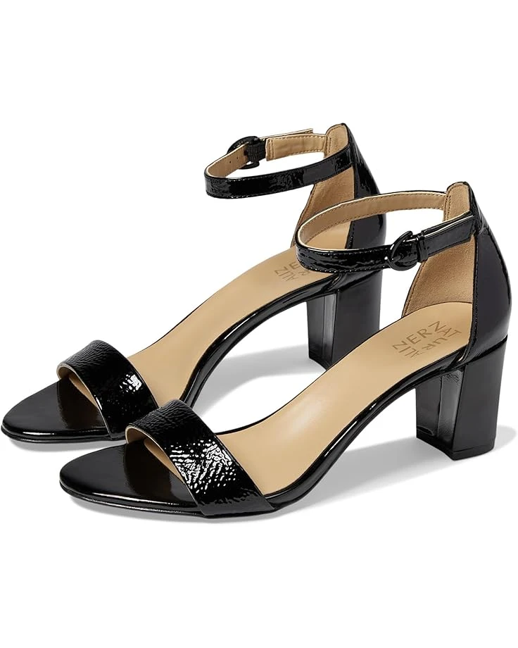 Love this shoe, it has the look of bare sandal but with great stability thanks to the closed back, ankle strap and block heel. I wear a size 11 and have problem feet on top of that, (I’ve have had corrective surgery on both feet), so it is unusual for me to find a very open style that gives me the support I need for extended wear. Unfortunately, the M width is really narrow. I have never needed to wear a wide width, but did so in this shoe. I kept the black patent which is beautiful and dressy, but found the nude color to be much too pale. I would have preferred a beige color that was closer to my skin tone and not so white. Hope Naturalizer continues to make more styles with this heel and back. I’d love to buy a second style other than this single-strap model.