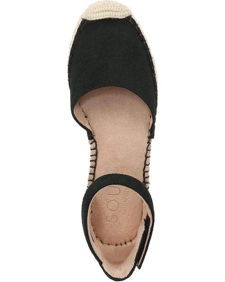 - Radiate your summer look wearing the Naturalizer® Wren Ankle Strap Low Heel Espadrille. Made using SoulContour technology, this pair of sandals are crafted from nylon upper, sculpted insole, premium foam lining, arch support with memory foam. It features closed almond toe with wrapped espadrille details, low wedge heel, adjustable hook-and-loop closure, and brand detailing on the footbed.