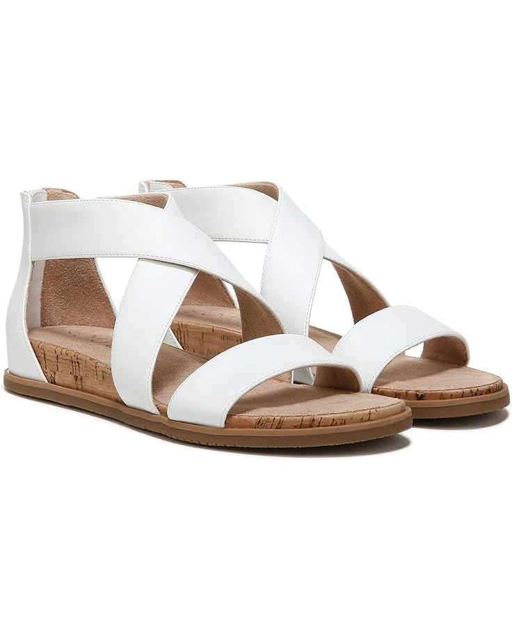 I am a flip flop girl for summer but I am having back issues and my doctor said “no flip flops!” OMG! I ordered several pairs of leather sandals that I thought looked fashionable. The Nauturalizer Soul were the only ones that had stability that were comfy. The shoe has amazing arch support and is easy to put on even with a bad back. The only issue I have with them is the zipper in the back. There is a flap of leather to protect your heel, which is good but at first it is hard to keep the leather out of the way while zipping the shoe. Enter my wonderful husband of over 50 years. He can zip them right up and now they are getting more pliable so I can too. They are very comfortable. I was worried about the strap placement with my little toes but it works fine. Love these sandals if I have to give up my flip flops for a while.