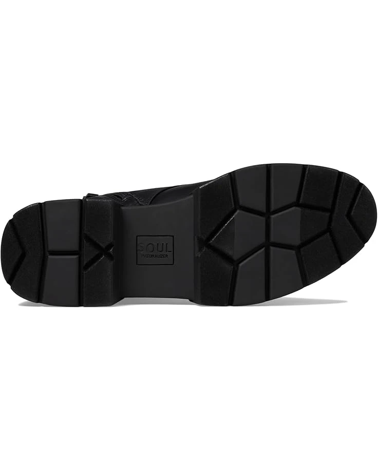 - Break the mold in style sporting SOUL Naturalizer® Ozzy! Embrace the fusion of edgy design and unmatched comfort in this mid-calf combat bootie. Featuring a sleek PU upper with a round toe, the Ozzy stands out with its cool lug sole and stylish lace-up front. A side zippered closure and elasticized goring panel provide effortless flexibility, while the soft foam lining and memory foam arch support deliver all-day comfort. Designed with an antimicrobial sock lining and a lightweight synthetic rubber outsole, this bootie is as versatile as it is fashionable.